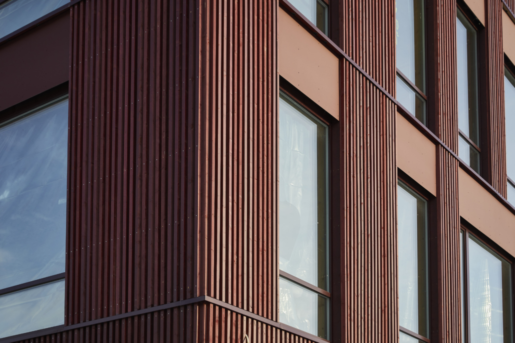 RVT har levert liggende ytterveggselementer i plan 1, 2, 3 og 4, gesimselementer, og elementer til teknisk rom på tak. Elementene inkluderte vinduer, beslag, fasadeplater, kledning i varierende breddedimensjon og spiler.