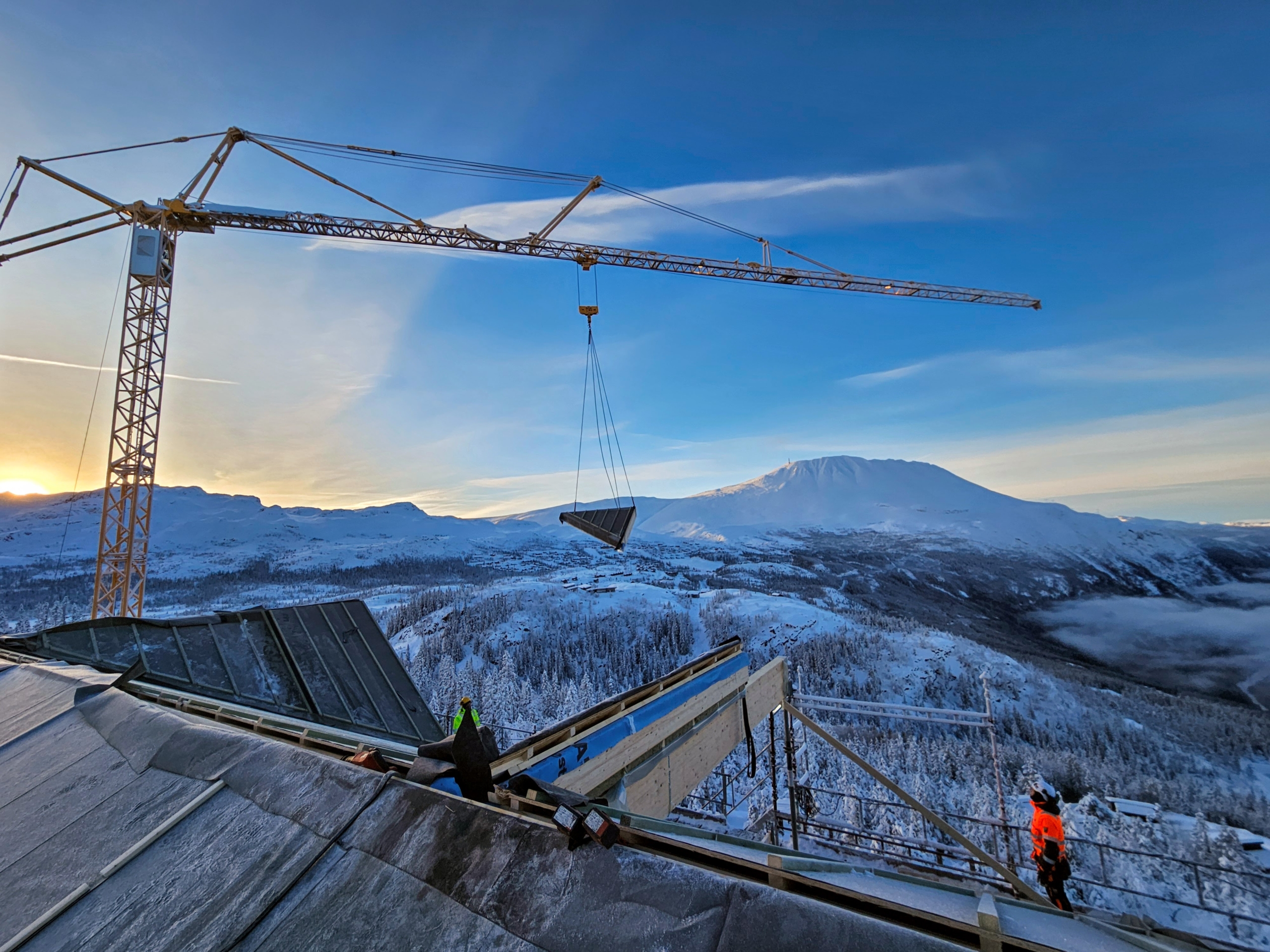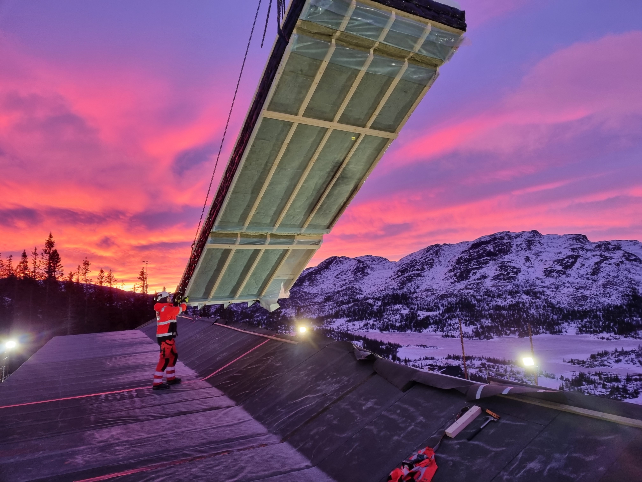 RVT har produsert og levert ferdig isolerte takelementer, med oppløft og ark. RVT har også stått for montasje av elementene.