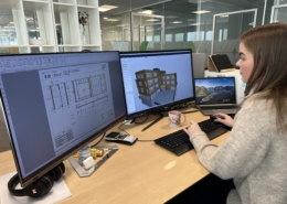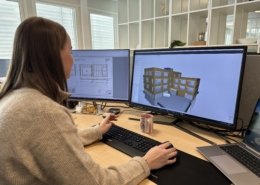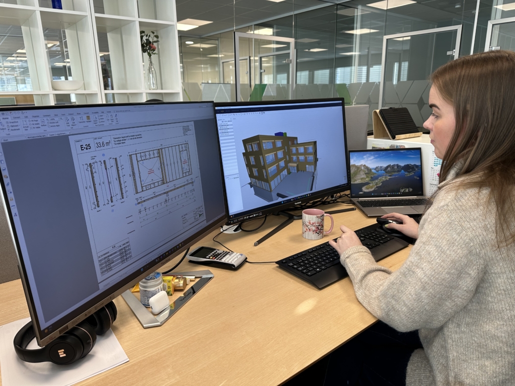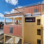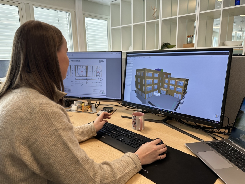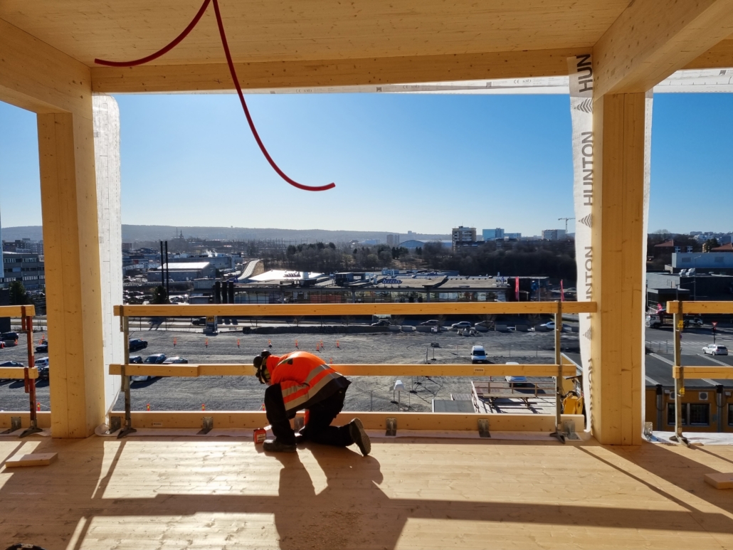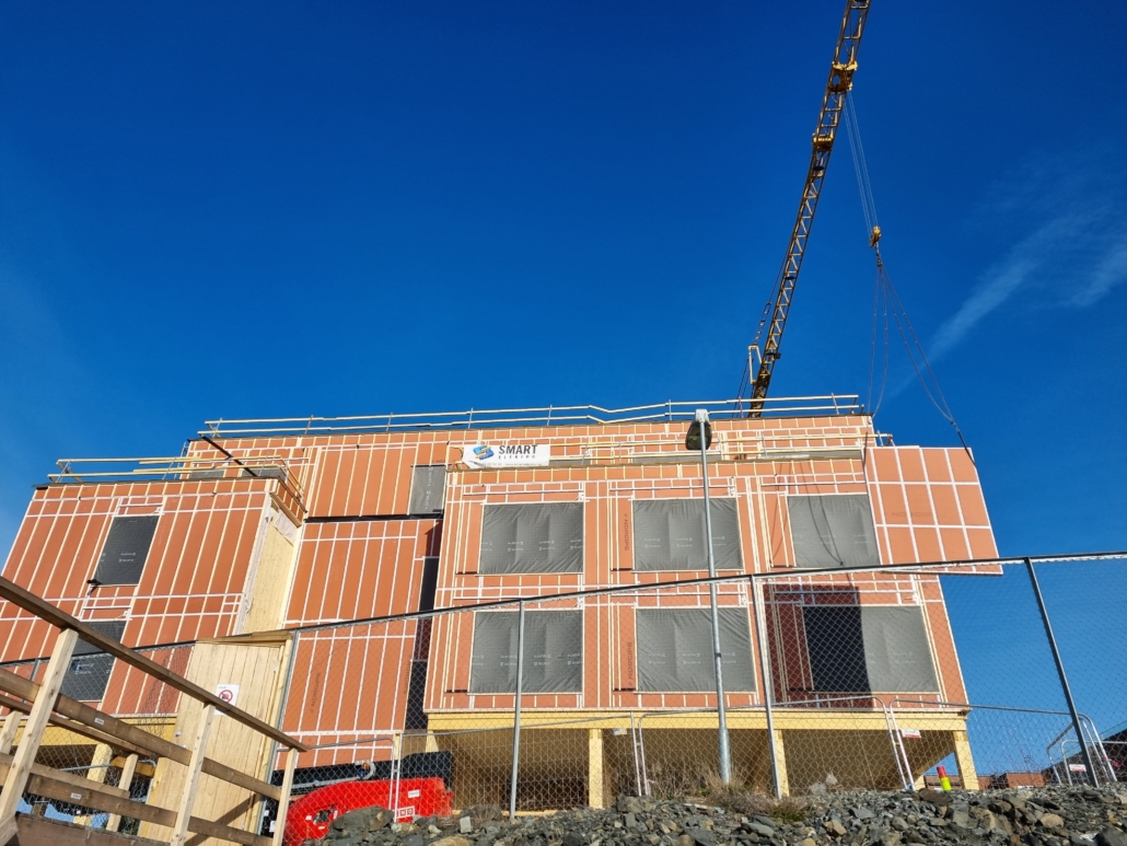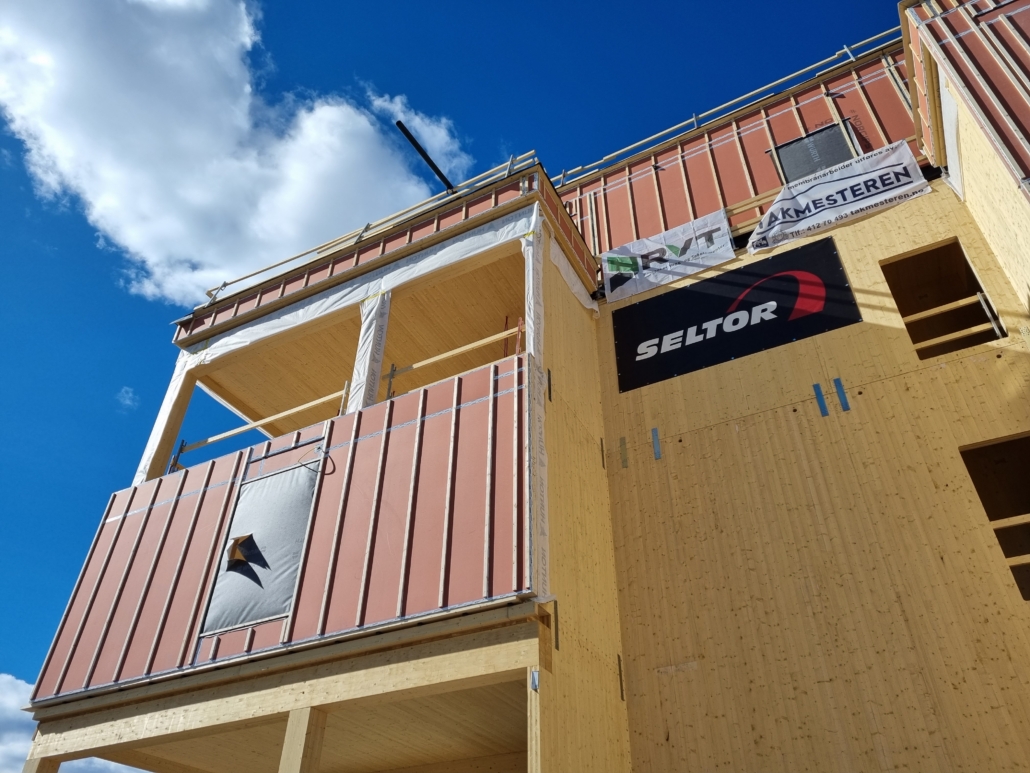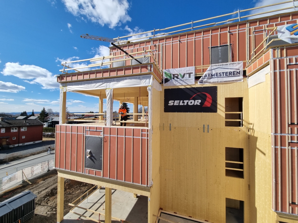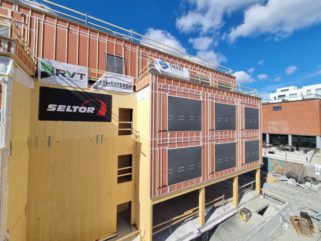 RVT har hatt gleden av å prosjektere, produsere og montere de demonterbare ytterveggselementene som er klargjort for utvendig kledning i prosjektet.