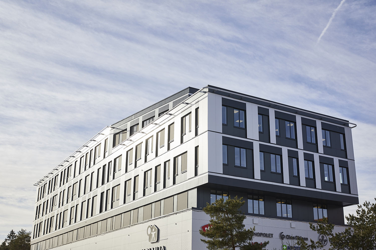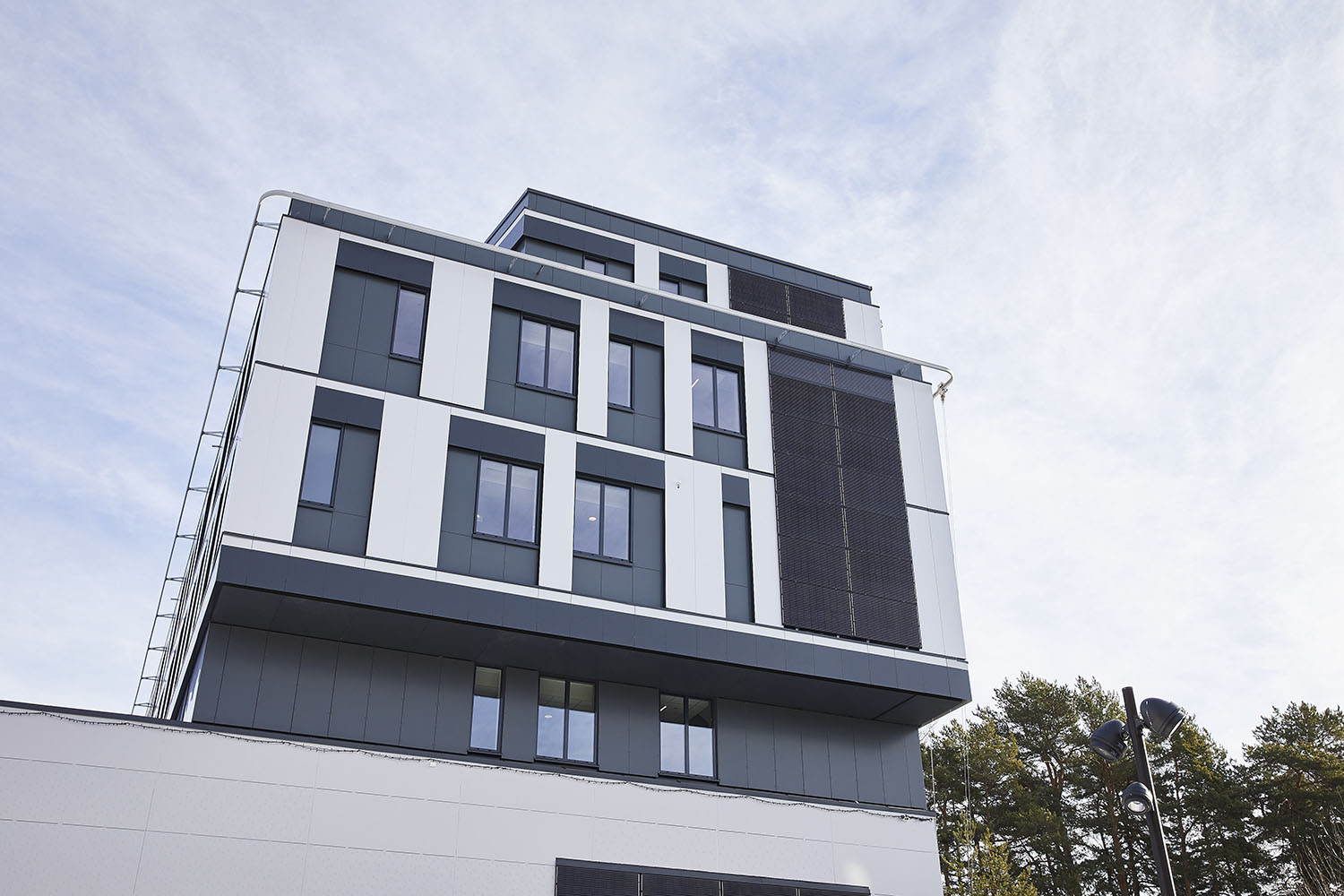 RVT har levert liggende ytterveggselementer i plan 3, 4, 5 og 6, samt gesimselementer. I tillegg en fasade, plan 1 opptil plan 3, med stående elementer.