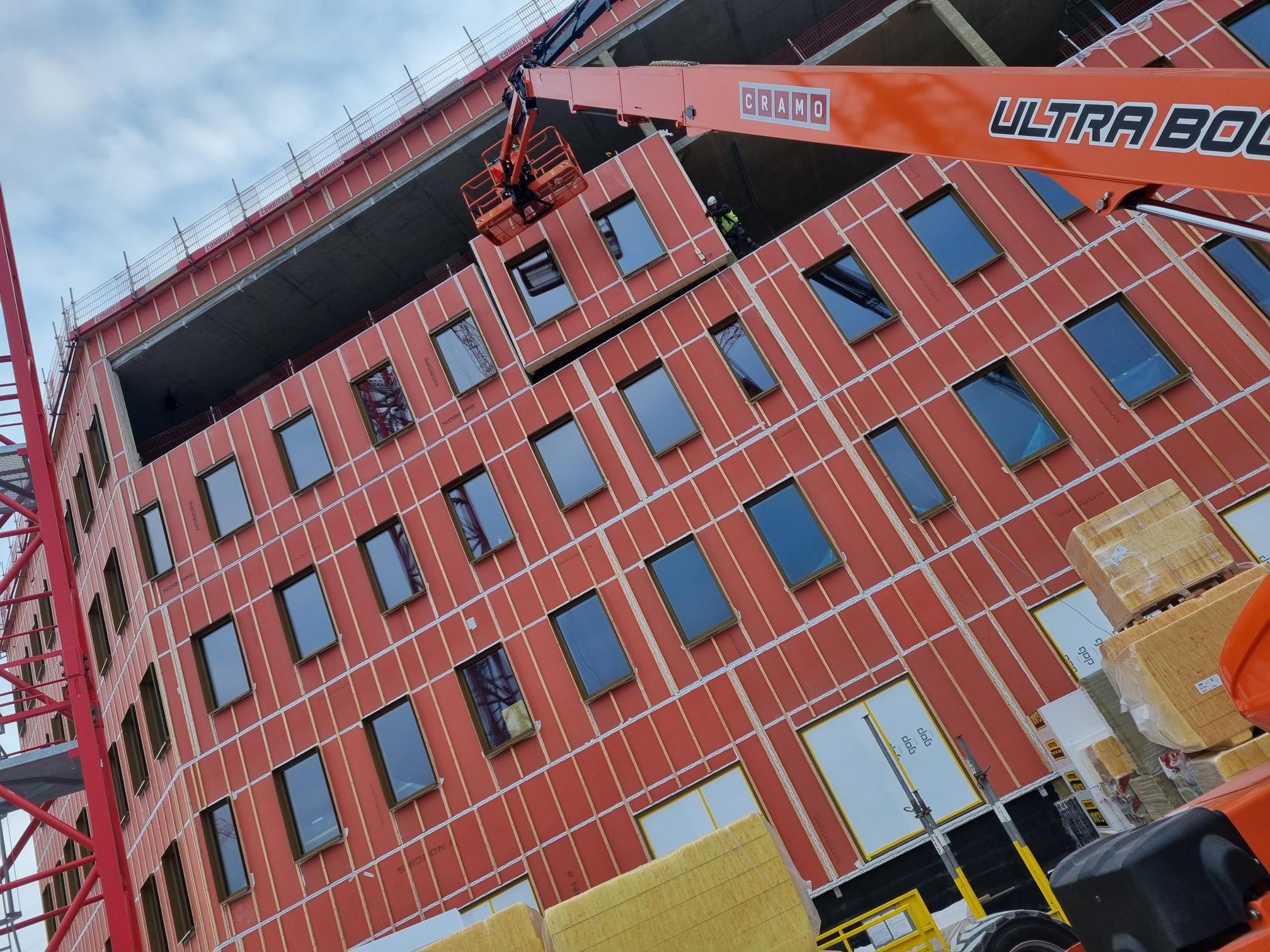Til prosjektet har RVT levert liggende veggelementer med monterte vinduer, screens og beslag. Elementene er klargjort for montering av fasadeplater og solceller.