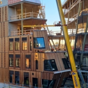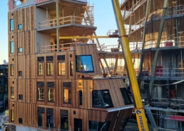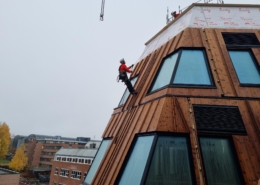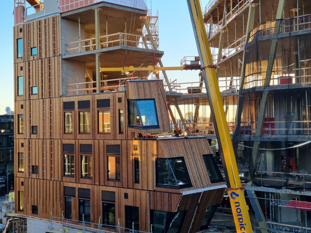 Vi har vært involvert i prosessen fra planlegging og testing til produksjon og endelig leveranse – inkludert panel, vinduer og beslag. Vi har også stått for monteringen på byggeplass og til slutt blåseisolert veggene for optimal kvalitet og effektivitet.